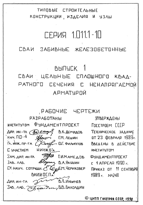 Серия 1.011.1-10. Сваи забивные железобетонные