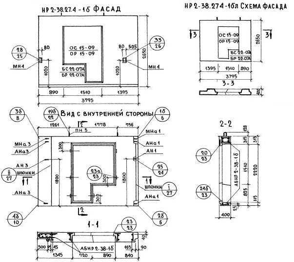 НР2-38.27.4-1б   Наружная стеновая панель рядовая по Серии 1.132-1.